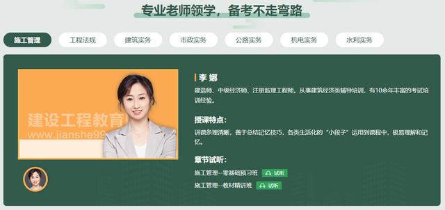 《施工管理》李娜;《工程法规》达江;《建筑实务》徐云博;《市政实务》李毅佳、田洋;《公路实务》宋卫东;《机电实务》唐琼;《水利实务》刘永强。