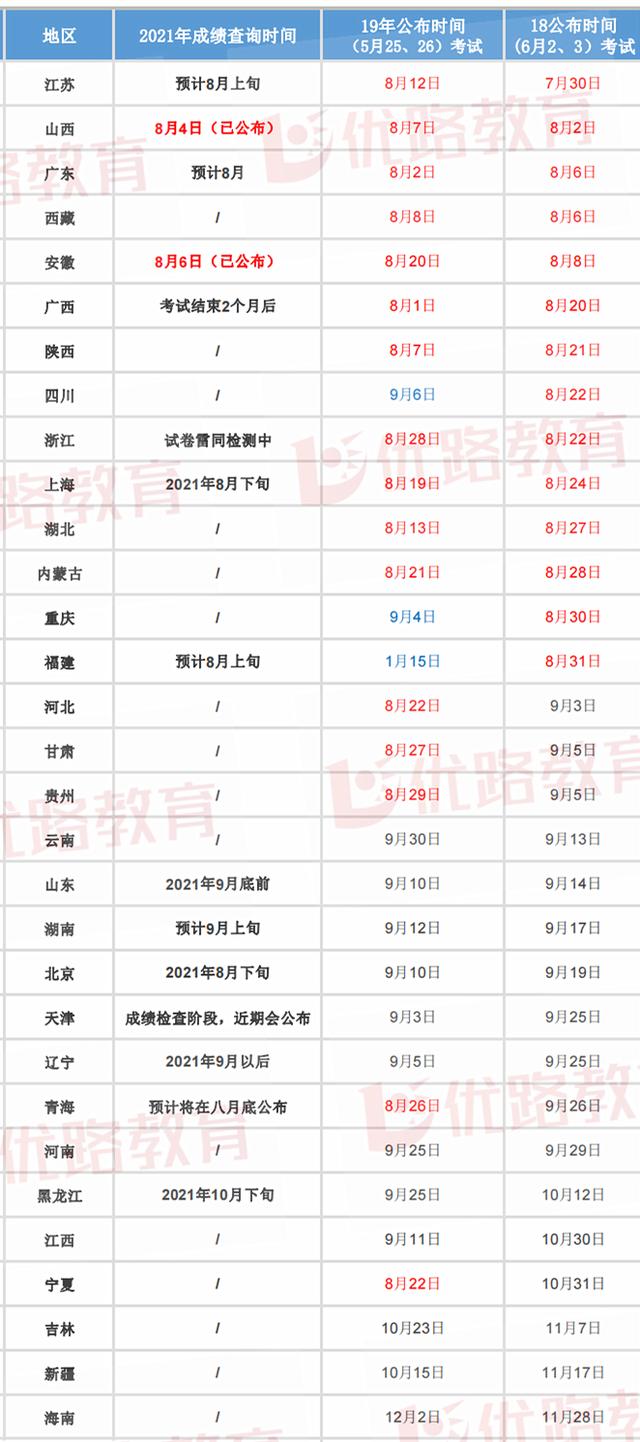 预计查分地区:广西、西藏(根据往年查分时间预计)