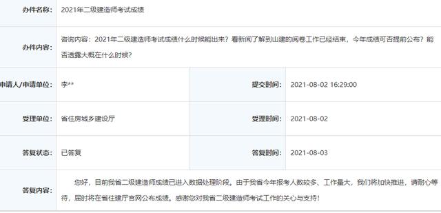 由于我省今年报考人数较多、工作量大,我们将加快推进,请耐心等待,届时将在省住建厅官网公布成绩。感谢您对我省二级建造师考试工作的关心与支持!