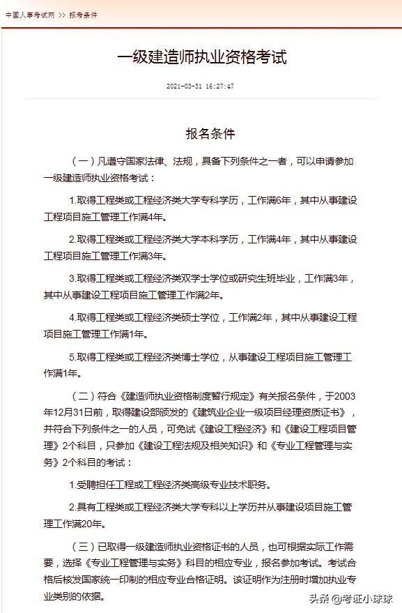 今年的一建报名时间以及考试时间也是出来了呢不知道你们看过今年的考试信息没?看下图(报名条件+考试时间)