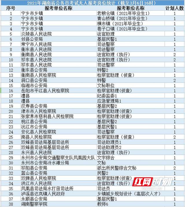 湖南人亊考试网官网(湖南人亊考试网官网查询2020年公务员报名情况广东省) 截至3月6日16时的统计数据显示,2021年湖南省公务员考试报名人数总计为121725人。其中最热门职位是长沙市农业农村局工作人员4,招录1人,共1724人报考。此外,还有38个岗位无人报考。 (点击可查看大图) 报考人员可登录湖南人事考试网(http://www.hunanpea.com)查阅具体的招考单位、职位、人数和报考资格条件,并进行网上报名。
