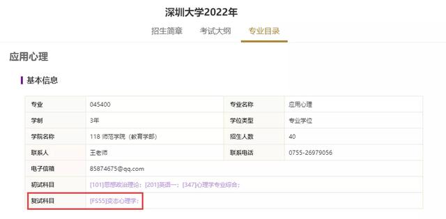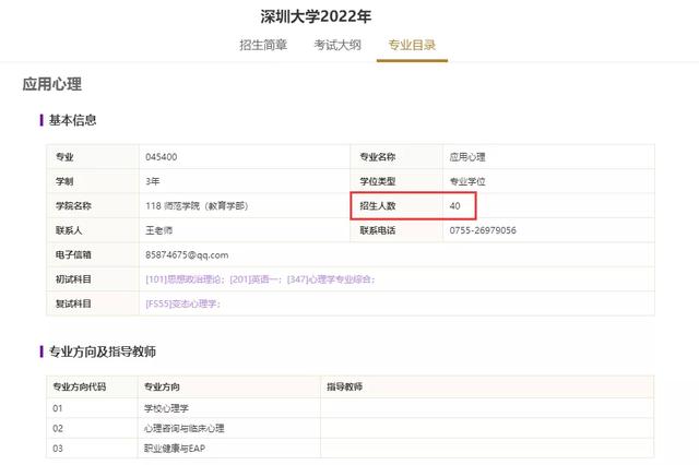 深圳大学应用心理专硕2022年拟招收专业方向分为: