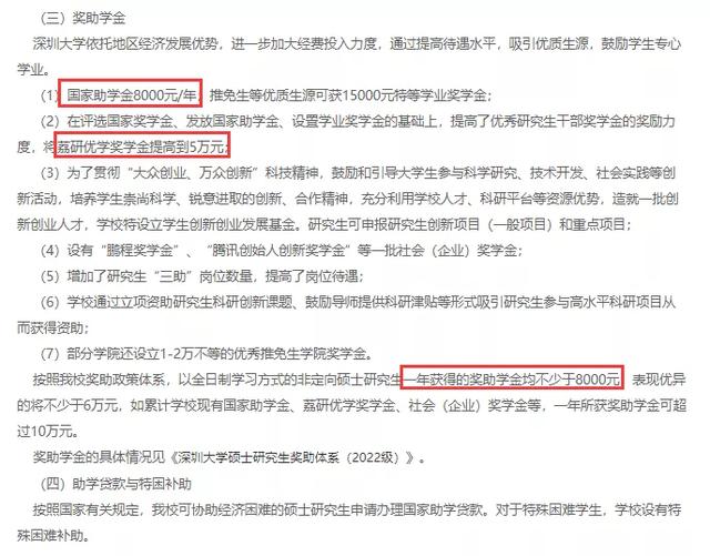 深圳大学研究生助学金8000元/年;特设新生奖学金,推免生等优质生源可获15000元新生特等奖学金。