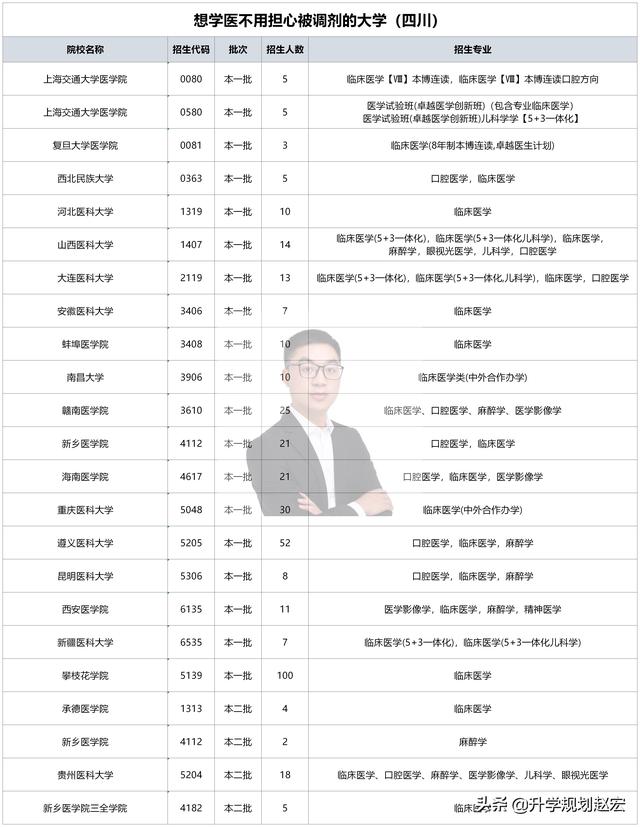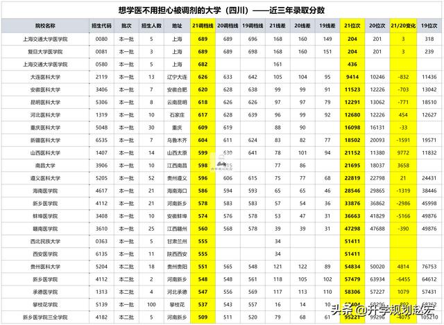 每年高考志愿填报都有很多家长考生想要报考医学,但是又怕被调剂到非医学专业,比如公共事业管理,社会工作等等专业,被调剂了结果却想着复读,所以填报的时候要小心;但是也有一部分大学在招生过程中,只有几个临床医学、口腔医学和麻醉学等相关的专业,所以报考的时候不用担心被调剂,另外就是咱们在冲院校的时候,也可以大胆的去报考;本文咱们统计了2021年在四川招生的院校中,总共有21所大学23个代码,本一批本二批都有,咱们可以提前关注参考;具体看下文