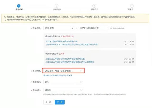 注明:招生单位、考试方式等关键信息不允许修改,若填写错误,只能取消报名后重新填写报名。