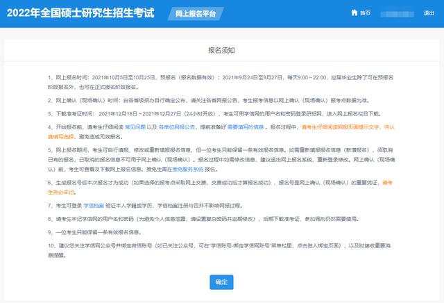 考生本人对网上报名信息要进行认真核对并确认。经考生确认后的报名信息在考试、复试及录取阶段一律不作修改,因考生填写错误引起的一切后果由其自行承担。