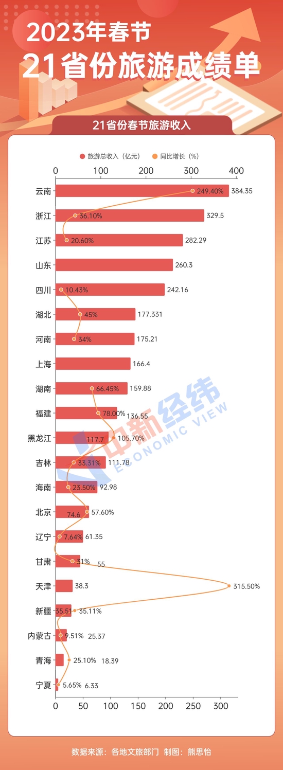 中新经纬1月30日电 (熊思怡)2023年春节假期刚刚结束,21省份已迫不及待交出旅游成绩单,你的家乡表现如何?来一睹为快!