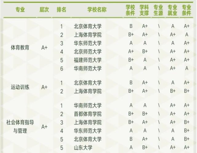 上图是部分体育类相关专业的学校实力排名,更多专业可在软科官网查看。总体来说,相对较好的是北京体育大学和上海体育学院,分别得到了国家体育总局和上海市政府的大力支持。