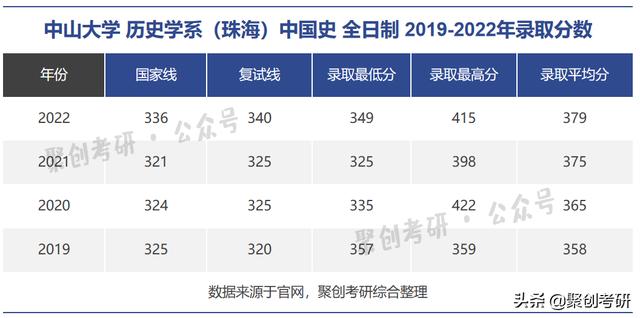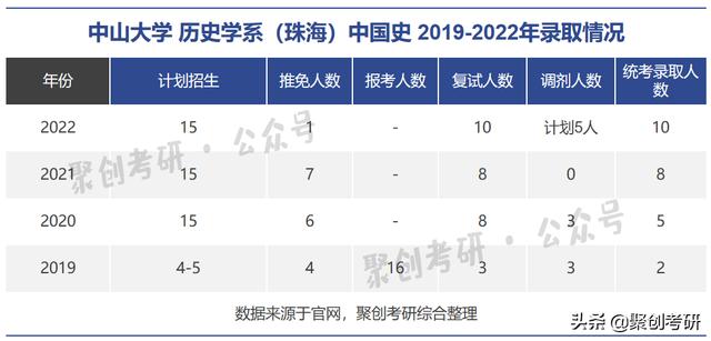 聚宝老师整理了中山大学历史学系(珠海校区)中国史专业 2019-2022年录取情况,相关数据整理如下: