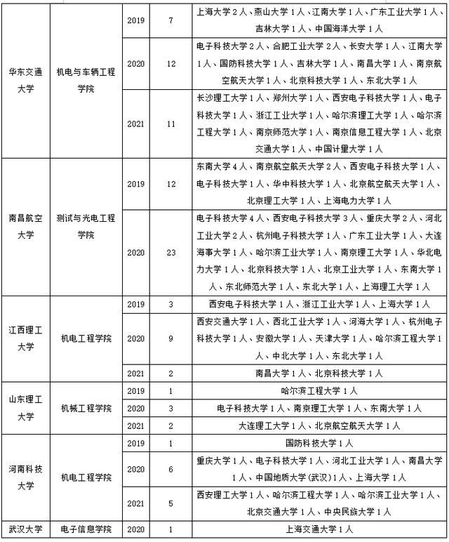 江西:华东交通大学机电与车辆工程学院、南昌航空大学测试与光电工程学院、江西理工大学机电工程学院、南昌大学转化医学研究院