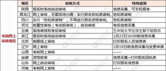 温馨提示:由于各地区报名具体政策不一,且报名通知中一般都会阐明该地区资格审核方式、报名前是否需要进行信息采集等,需要该地区考生仔细阅读。