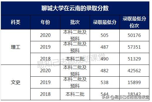 聊城大学2020年在云南的招生,理科录取最低分是505分,比一本线差了30分;文科录取最低分则是482分,比一本线低了整整73分!