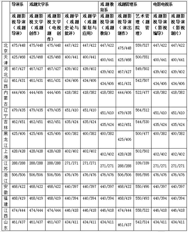 2.戏剧学(戏剧史论与批评方向,戏剧策划与应用方向),戏剧影视导演(戏剧教育方向,影视编导方向,影视制片方向)录取控制分数线按照生源所在省(自治区,直辖市)本科一批录取控制分数线的85%划定。