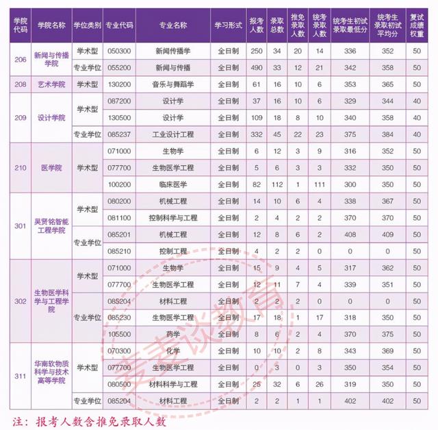 今天给各位2022年“考研人”们分享华南理工大学近三年来(2018-2020)各学院内各专业的报录比数据即统考最低分数情况。文中报名人数均包含有推免生人数。总录取人数含推免,统考录取人数不含推免生。