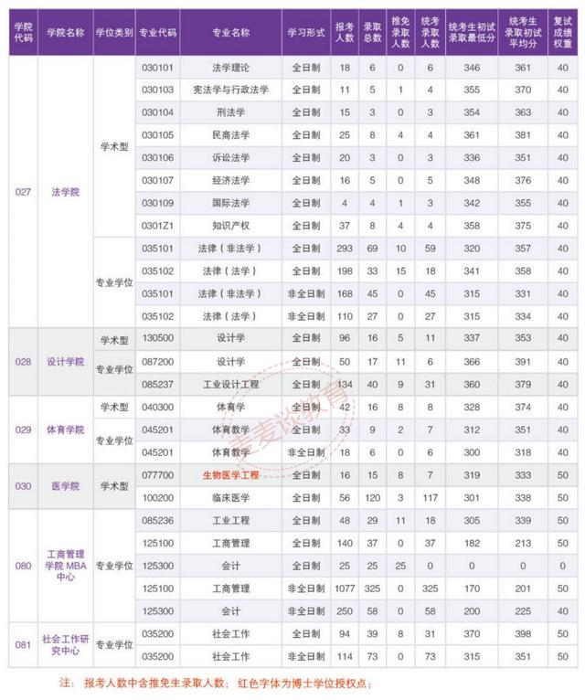 备注:2018年报考人数中含推免生,红色标注专业为博士学位授权点。