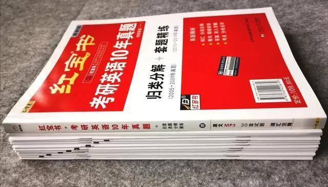 - 《红宝书·考研英语10年真题》 遵循由简单到复杂、从局部到整体的原则,先分类突破,再整合提高。这本书适合打基础,长难句分析透彻。里面的词汇注释也详细,我觉得这点做的好,即使你语法不好,也可以通过图解分析出句子的结构和成分。做好这些,你的英语水平会有一个质的提高。通过科学、合理、高效地使用真题,全面提升应试能力。