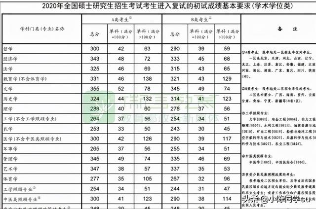 单科线:所能参加复试要求的最低单科分数(防止偏科严重)。比如说:20届工科专业A类考生政治英语最低要求37分,高数最低56分;B类考生政治英语最低要求34分,高数要求51分。简单言之,即使你考研总分考到了三百多,远远超过了国家线,但你的英语只考了33分,那你也没有资格参加任何学校的复试,调剂都不可能。