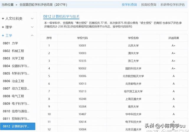 右上角选取按学科查询,左边选取工学分类,找到计算机科学与技术,点击,右侧就出现了查询结果。