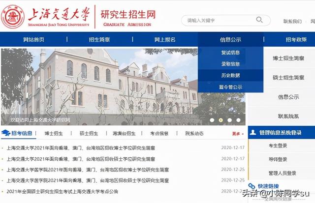 (1)进入上海交通大学研究生招生网,点击信息公示,进入历史数据,就可以看到复试线和往年录取统计了。
