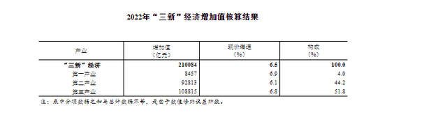 【国家统计局:2022年我国“三新”经济增加值相当于国内生产总值的比重为17.36%】财联社7月28日电,据国家统计局消息,经核算,2022年我国“三新”经济增加值为210084亿元,比上年增长6.5%,比同期国内生产总值(GDP)现价增速高1.2个百分点;相当于GDP的比重为17.36%,比上年提高0.11个百分点。