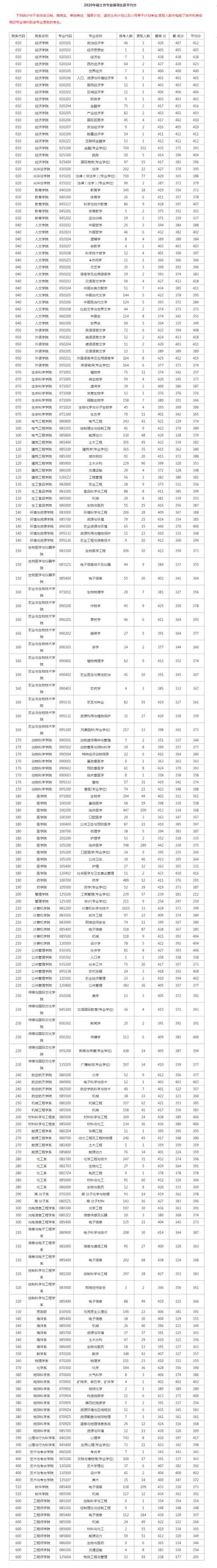 大家可以参考一下往年各个专业的最终录取情况,以2020年各专业分数线为例。
