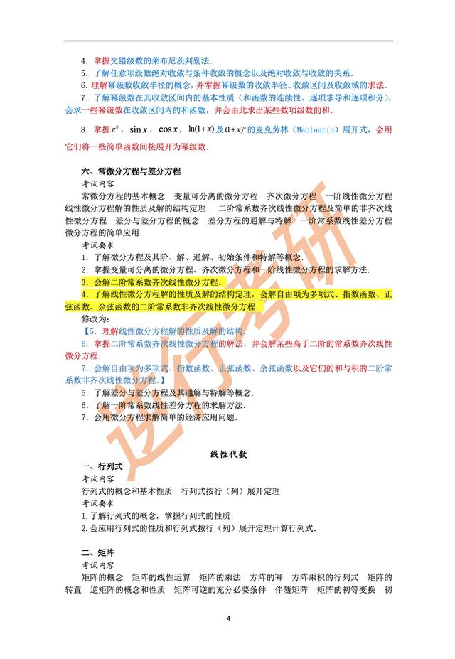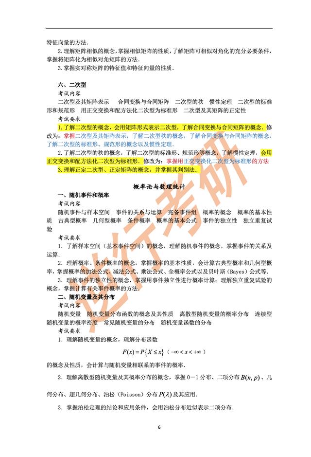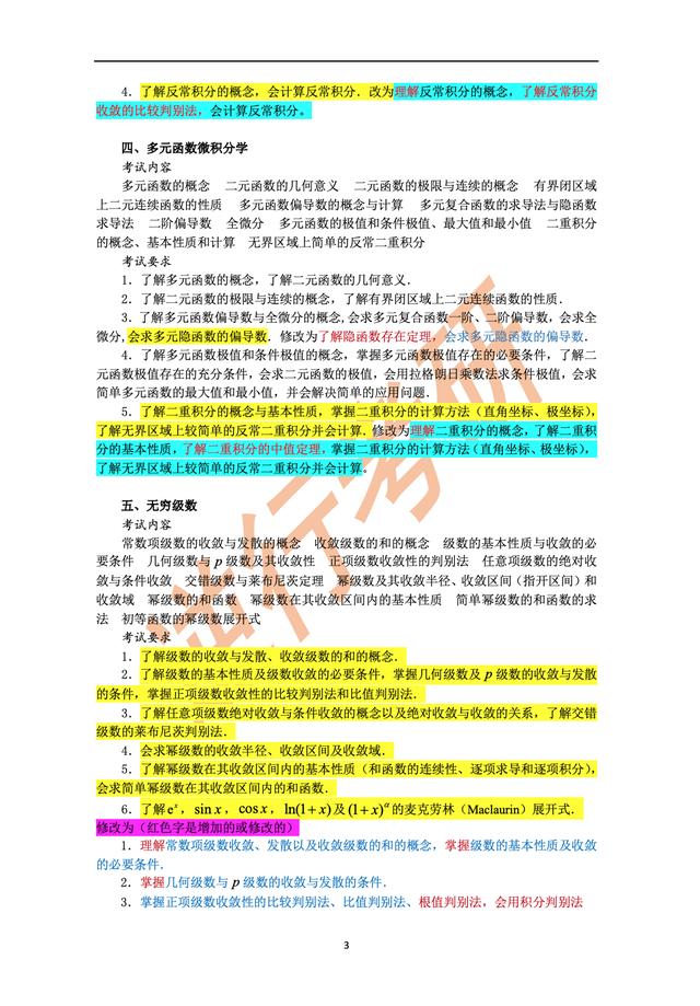 • 最新的考研数学三大纲刚刚整理好,现在就发出来,同学们多注意加颜色的字体,这很有可能就是今年考试的重点喽!