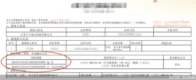 除了保费不一致和投保人资格问题,王欣欣也对小牛电动的保险业务资质提出了疑问。