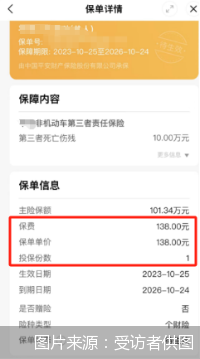 “为什么前两天还说只能查到138元,现在却改口了?况且保单上也写明了,保障期限为2023年10月24日到2026年10月24日,保费合计138元,怎么又成了一年的保费?”对于客服前后不一致的表述,王欣欣表示不能接受。