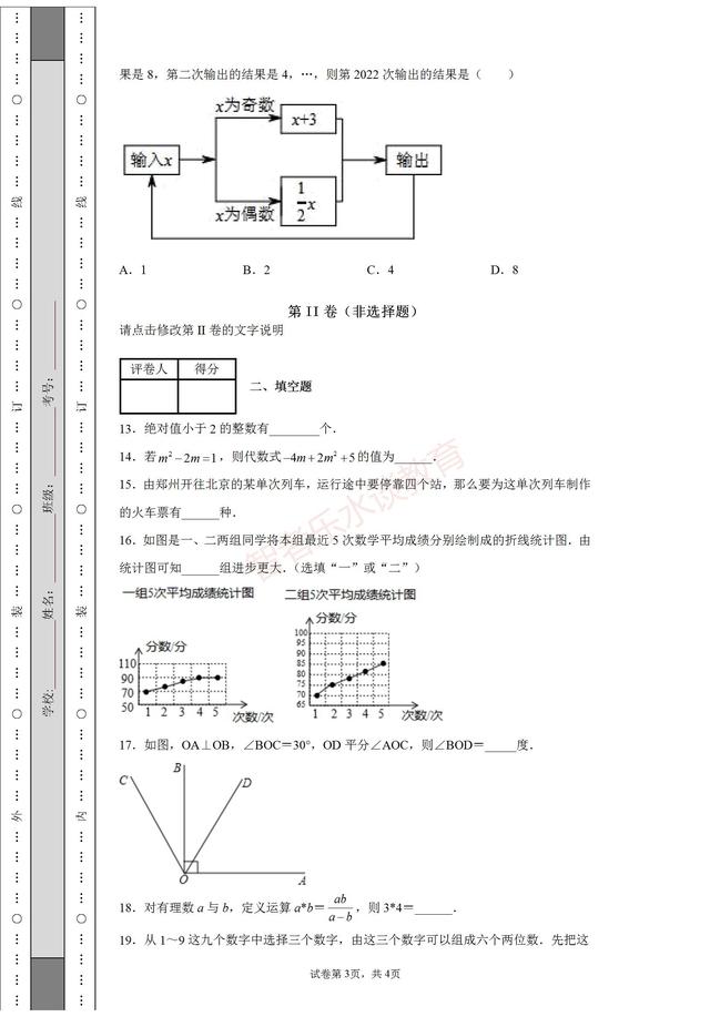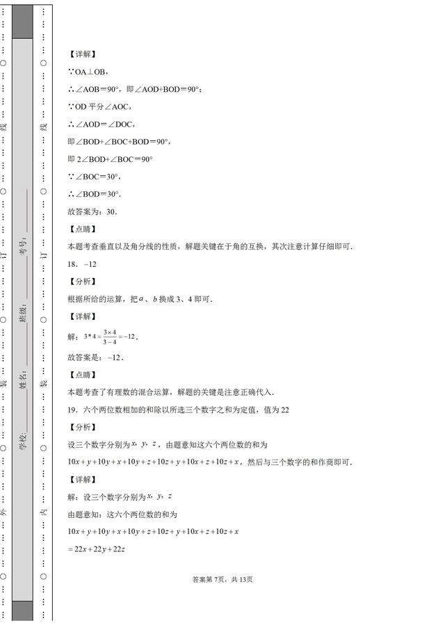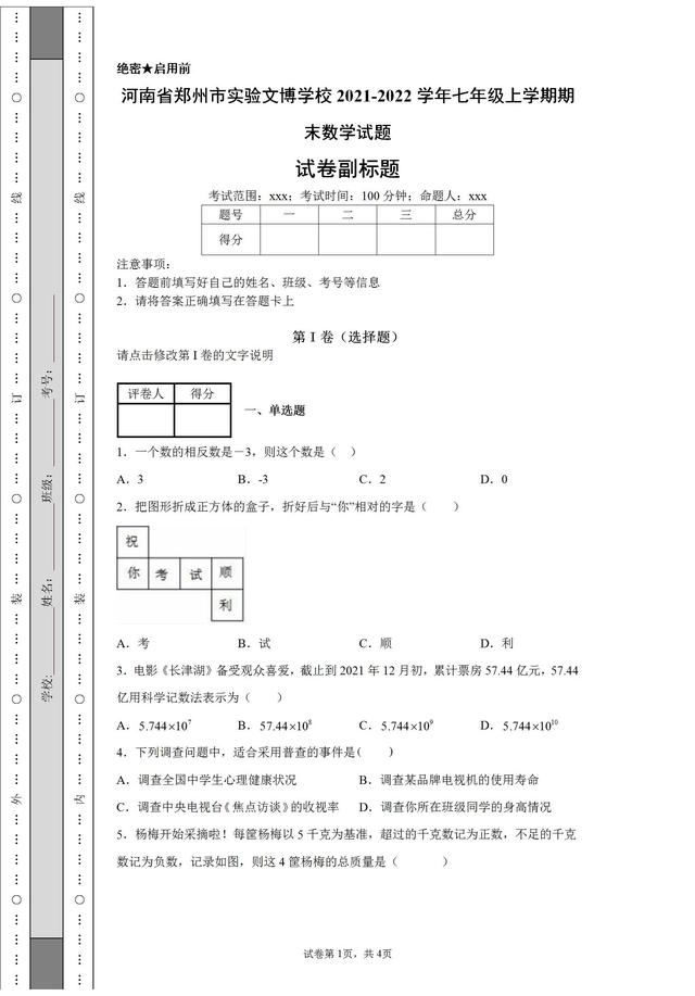 河南省郑州市实验文博学校2021-2022学年七年级上学期期末数学试题试卷含参考答案,这份试卷不错,值得借鉴参考。#家庭教育##初中学习#
