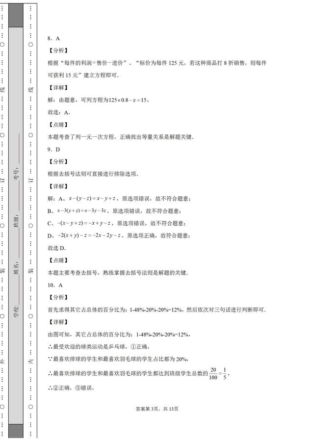 8.超市正在热销某种商品,其标价为每件125元,若这种商品打8折销售,则每件可获利15元,设该商品每件的进价为x元,根据题意可列出的一元一次方程为( )