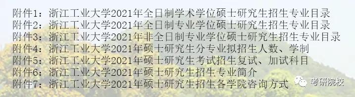 浙江工业大学2021年硕士研究生全国统考专业目录、考试科目