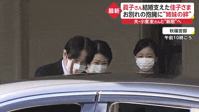 当时真子离开皇室的出门仪式上,她的妹妹佳子摆脱了皇宫的严苛制度和姐姐紧紧的拥抱了许久,这是日本皇室中极为罕见的现象。