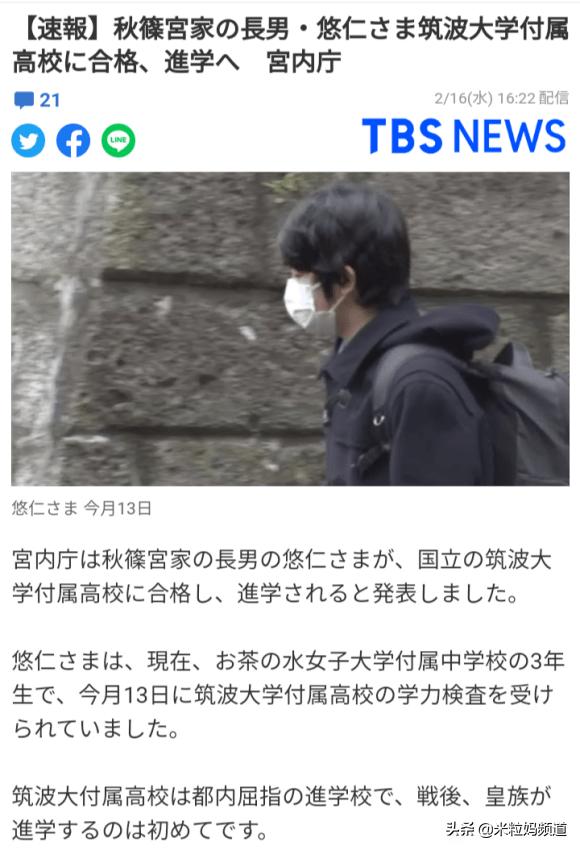 今天有点空闲,米粒妈备好了瓜子,来跟姐妹们聊聊日本皇室八卦。前阵子日本媒体曝出皇室唯一的王子悠仁亲王,将就读筑波大学附属中学(相当于中国的人大附),这可是继真子公主出嫁后的新鲜大瓜!