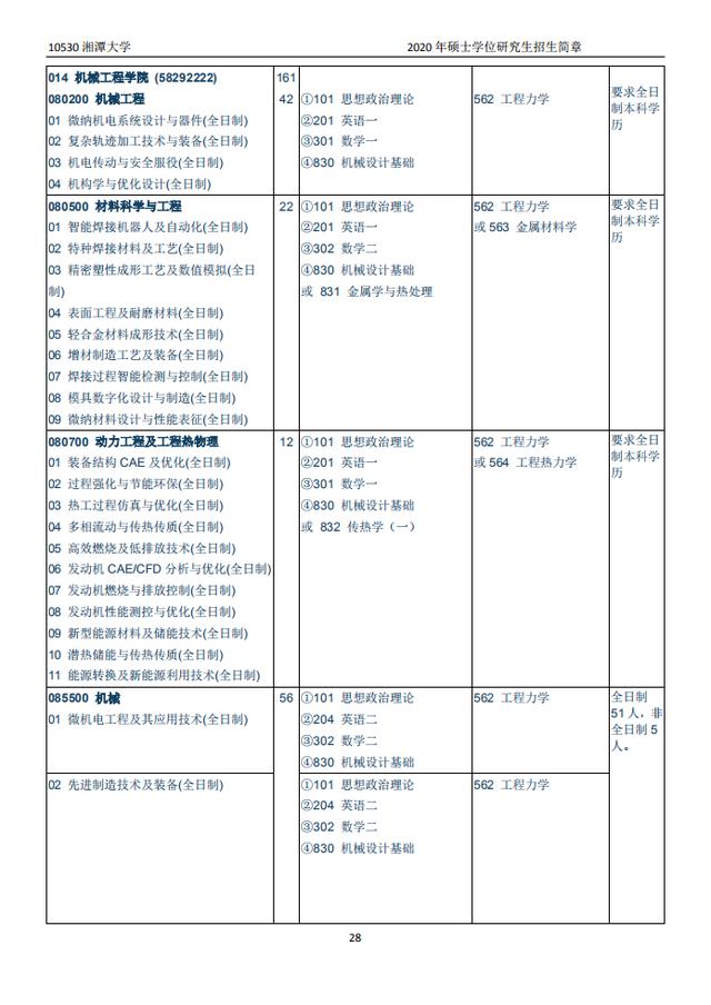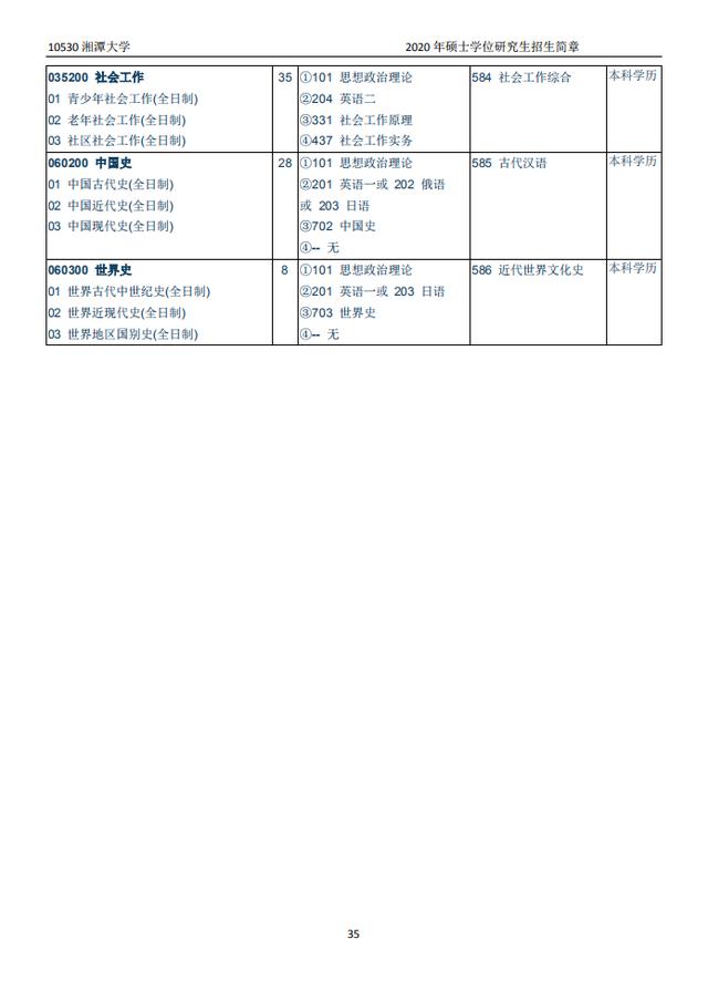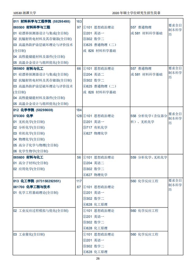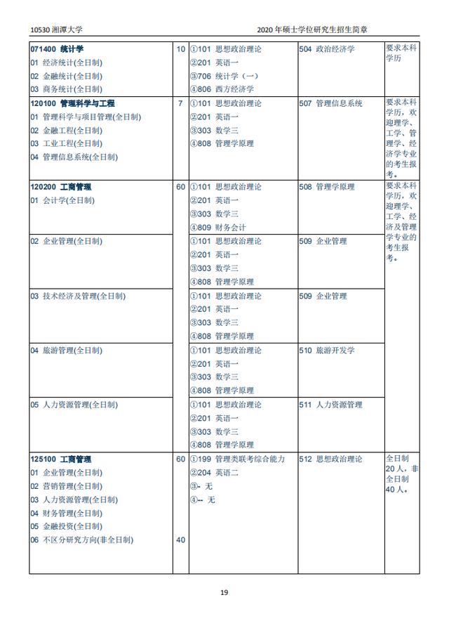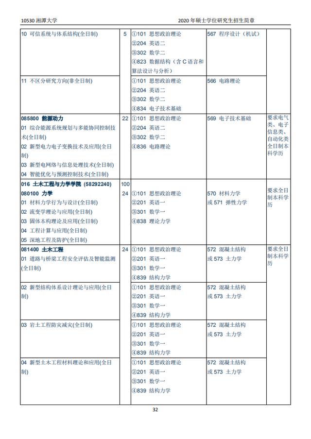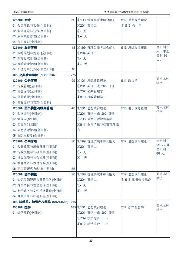 湘潭大学2020硕士研究生招生目录