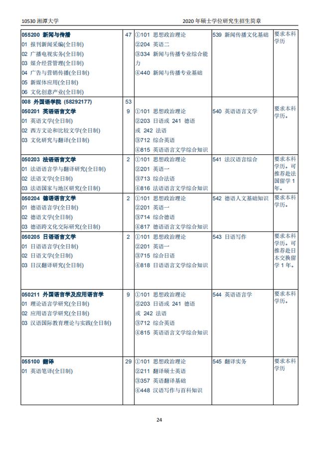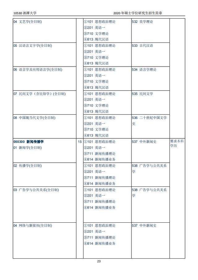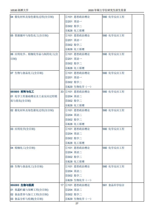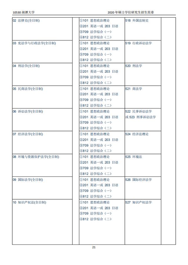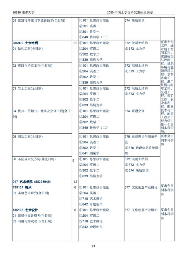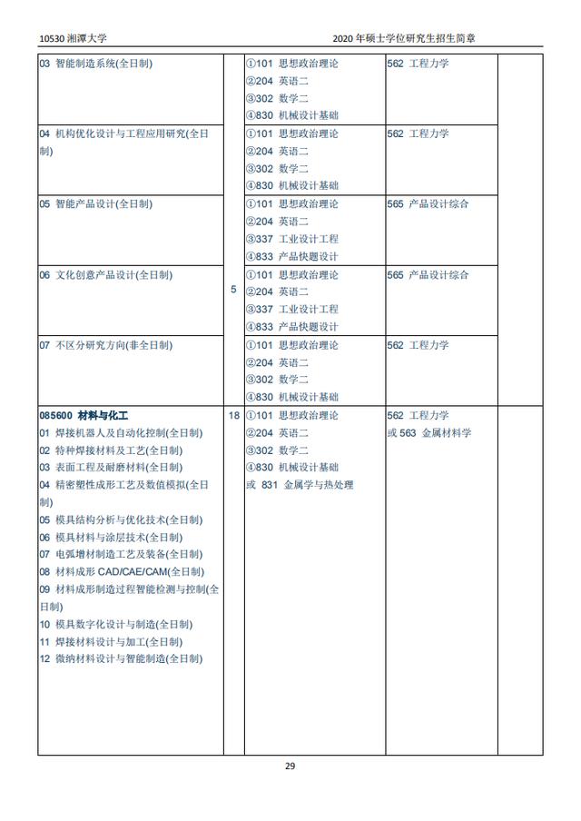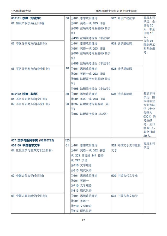 湘潭大学2020硕士研究生招生目录