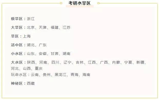 我们通常把批卷严格、压分严重的地区叫做旱区,批卷相对宽松,给分水分较大的地区相应地被称为“水区”,这跟不同地区的考研人数和考研难度有很大关系。