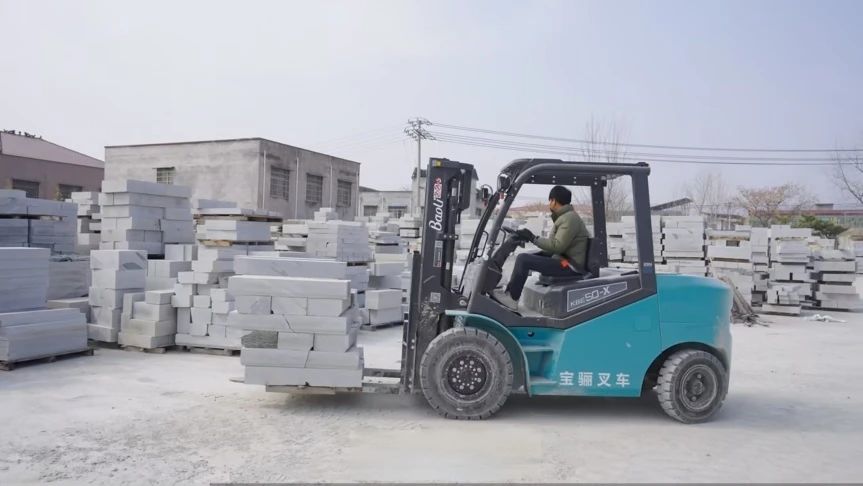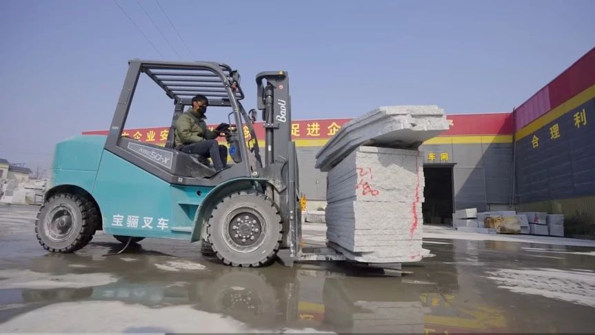 该企业作为石材加工领域的佼佼者,打造了集原石开采、生产加工、销售运输于一体的完整产业链。使用传统燃油叉车搬运石材,不仅面临严格的环保监管,而且能耗高、费用贵,更需要维护频繁。宝骊KBE50-X凭借绿色环保、快速高效、节能降耗及品质可靠等众多优势,为客户破解石材搬运难题。