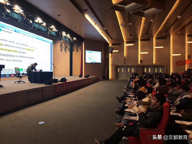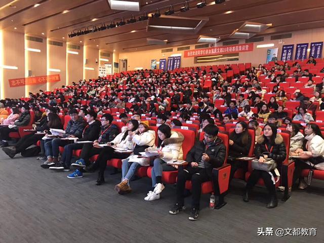 近千名文都学子在礼堂内听老师讲课,他们聚精会神,奋笔疾书,生怕错过老师讲的每一个字。