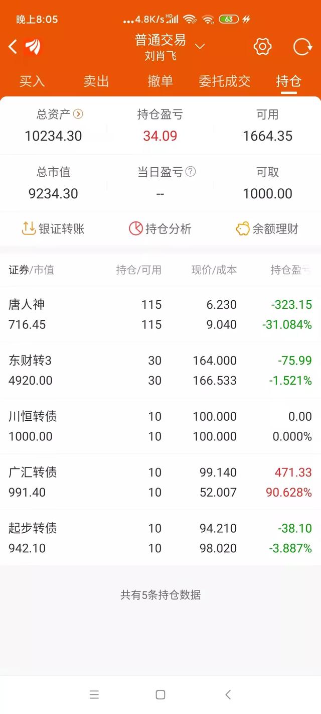 本周股票账户继续持有东方财富,伊利股份和双汇发展,基金账户也没什么操作。可转债账户卖出了一些低价可转债,全部买入了东财转3,成本价166.5元,这笔交易是临时决定的,现在看有点后悔,这个溢价率已经不如直接去买东财正股了,毕竟马上到转股期了,现在还有10%的溢价,还面临这强赎的风险。不过已经操作了,就看运气了。