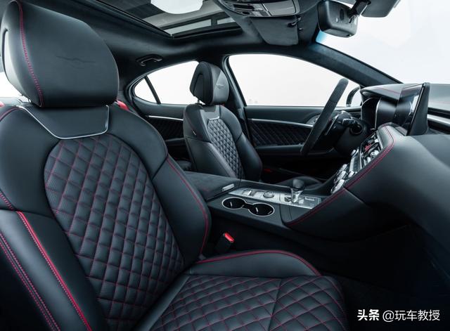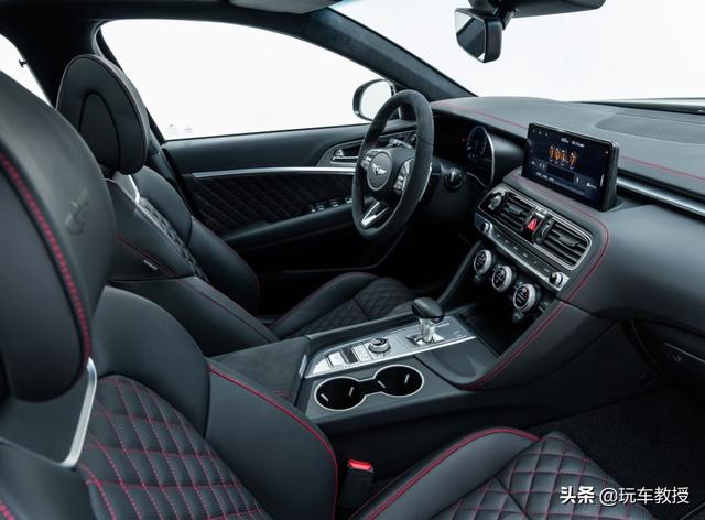 内饰方面,捷尼赛思G70整体设计风格还是较为传统,与前卫时尚的外观显得格格不入,配备了三幅式多功能方向盘,并带有换挡拨片、12.3英寸全液晶仪表盘(高配)、10.25英寸悬浮式中控屏和机械式换挡机构等。同时保留了众多物理按键,在科技感方面表现较为一般,不如现代索纳塔那套设计布局,不过好在实用性很高。