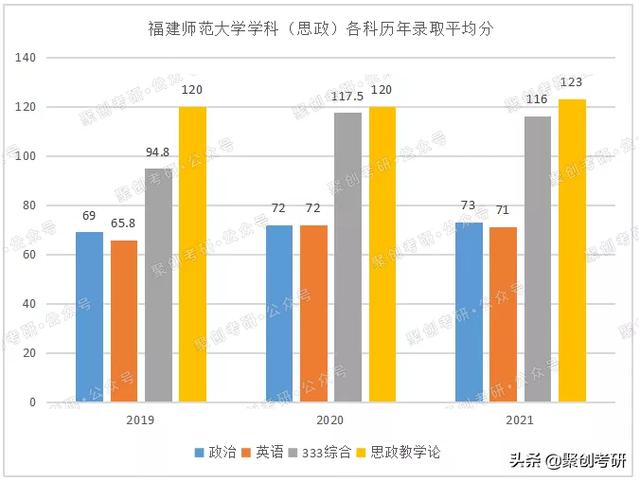 对于计划报考福建师范学科思政的同学们,政治与英语需尽可能达到70分左右,这也对于总分的压力相对较小。同时在专业课思政教学论部分,录取考生间分差相对较小,整体分数不低,但又难以出现过高的分值,整体分数维持在120左右。