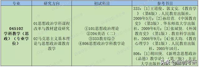初试考察专业课涵盖内容相对适中,333所指定参考书目多为经典参考书。第二名业务课的参考书目仅新理念思想政治教学论一本,该门课整体复习压力不大。
