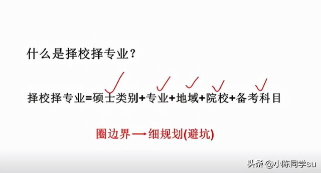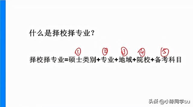 我们但凡聊择校择专业这个事儿,我们先要给他下个定义,到底什么叫做校做专业?我觉得关于择专业,你把这5点干了。第一个问题我要考一个什么样的硕士类别?第2个到底考什么专业,第3个到底去哪儿?第4个考什么学校,前面都确定了之后我就知道他到底考什么科目。