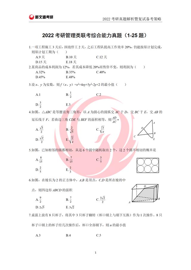 2022考研管综难吗?管理类联考主要考察数学、逻辑、写作三个部分。虽然数学考试难度相对其他专业要低,但题量大、综合性强……下面,新文道考研为大家整理了完整版2022考研管综数学真题及答案。 管理联考的专业会计硕士(MPAcc)、图书情报硕士、工商管理硕士(MBA)、公共管理硕士(MPA)、旅游管理硕士、工程管理硕士和审计硕士这7个专业。 以上是2022考研管综数学真题。完整版管综考研真题及答案,关注私信小编领取!