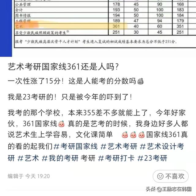 我们一起来看一看艺术类考研国家分数线,A区竟然高达361,B区351,分数线竟然比去年高了15分,给了许多考生一个措手不及。