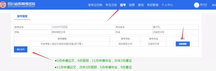 考生考完所有对应的考试科目并全部合格后(60分及格),在每年的5月或11月申请毕业论文及答辩(这个步骤只针对本科,专科不涉及!)