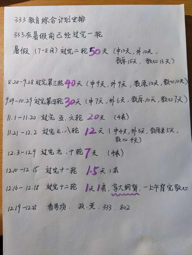 冲刺阶段(9-12月中):开始学习政治、英语真题要至少刷3遍、专业课一、二至少背N+2次(N=自己刚好能记住的次数,一般是3次)。