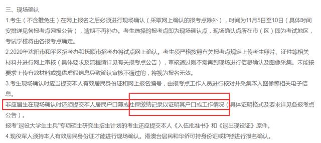 非应届生在现场确认时还须提交本人居民户口簿或社保缴纳记录以证明其户口或工作情况(具体证明格式及要求详见各报考点公告)。