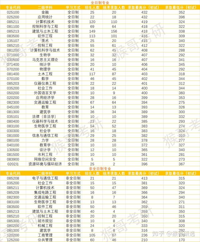 从招生人数和统考录取人数的对比差来看,建筑与土木工程、控制工程、物理学、社会学的统考录取人数要多于计划招生名额,由此可见,这四大专业有一定扩招的空间,后续可能会扩大招生人数,想要报考上述专业的考研er们可以特别注意下。