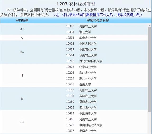 学科评估可以参考农林经济管理专业的排名: